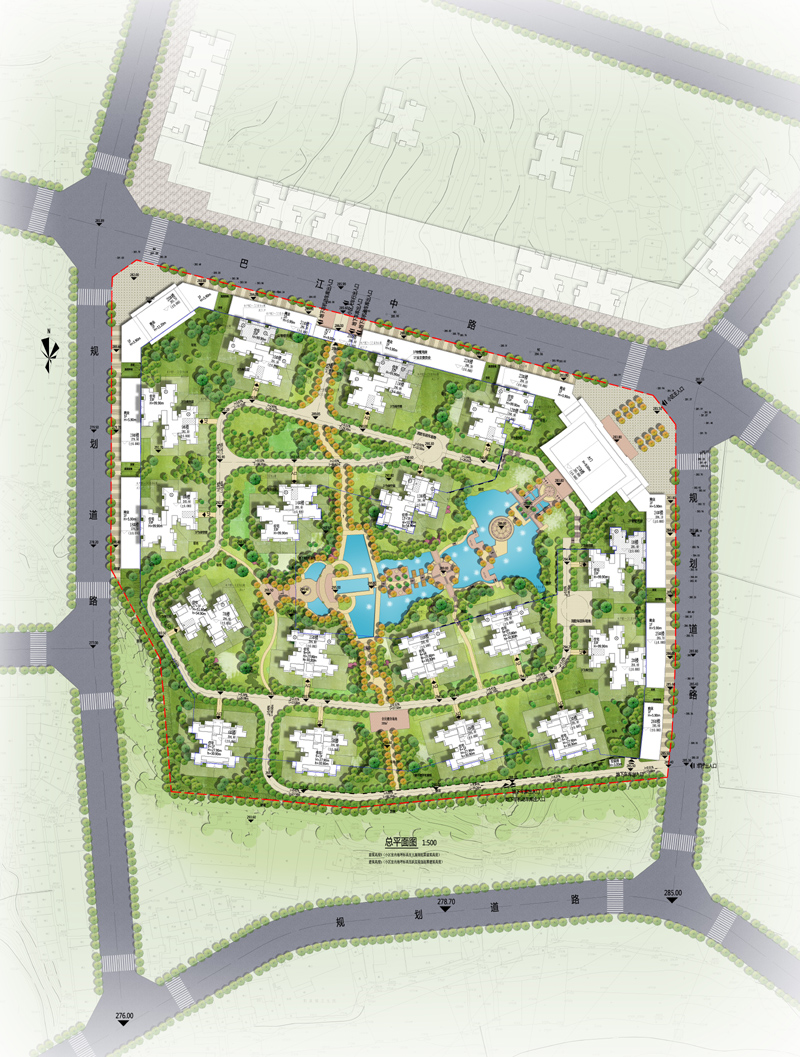 •结合基地的自然环境,进行总体的景观规划设计,为总体规划锦上添花。